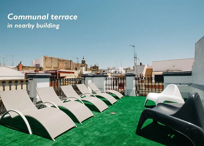El apartamento Hostly Acetres 1B-2B Center-Fibre-Conmunal Terrace-Parking Optional dispone de una cocina donde se puede encontrar todos los utensilios necesarios, incluyendo un lavavajillas y una tostadora. La estación de metro Puerta Jerez se sitúa a unos 15 minutos a pie. Las instalaciones adicionales incluyen una terraza-solárium.